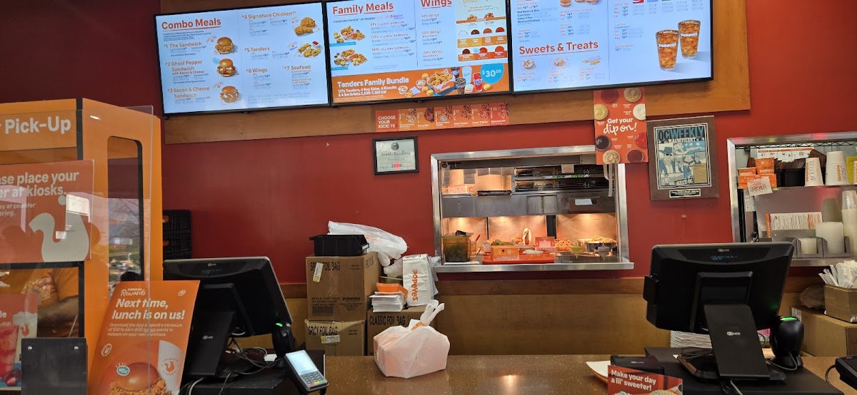 Walking into this Popeyes, you’ll find the usual fast-casual fare: counter service with seating, easy take-away or delivery options, even outdoor seating. The venue is setup for dine-in lunches or dinners, solo visits, or grabbing food for a quick bite. Accessibility is strong here, with wheelchair-accessible car park, entrance and even seating.